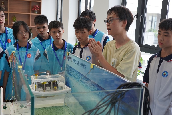 师生参与研发的作品,志愿者向同学们详细介绍了学院参与的中国空间站上探测器项目,MOTV