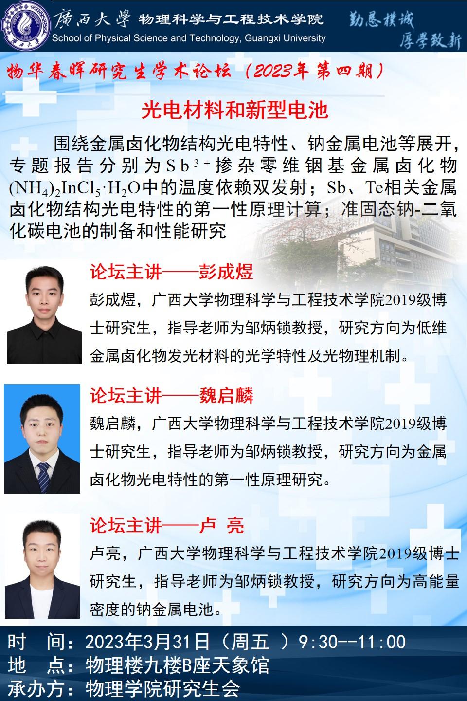 上一篇:2023年物华春晖学术论坛(第5期):分享同学——韦思跃、杨艳莲、彭逸