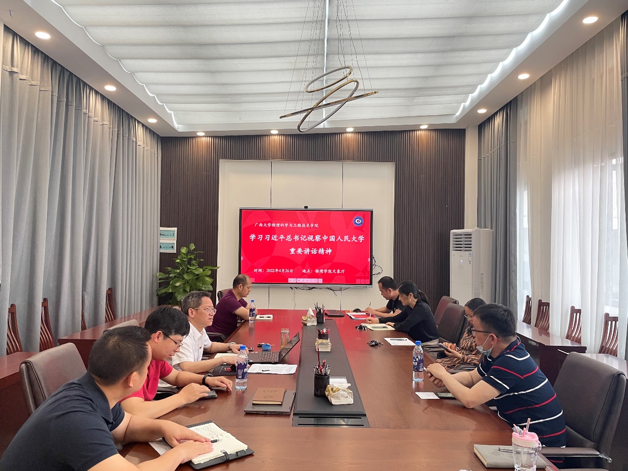 组织师生通过中心组理论学习、主题党日活动、主题团日活动、观看视频、交流研讨、发表百字谈等线上线下相结合的形式,学习热议习近平总书记在中国人民大学考察时的重要讲话精神,全院范围内掀起了学习热潮。