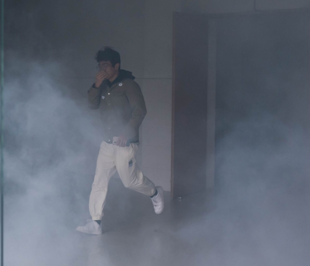 演练结束后,黄光电老师对本次活动进行了点评。他充分肯定了师生在演练过程中临危不乱、有序撤离的表现,希望大家能明晰活动的意义,时刻重视消防安全。