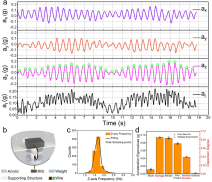 蓝色能源团队和中科院北京纳米能源与系统研究所合作,通过系列实验揭示了厘米级漂浮物与水波之间的相互作用规律。通过将惯性测量单元(IMU)集成到各种漂浮物壳体中,实验研究了不同壳体形状、壳体尺寸、重量、重心、波浪强度/频率、造浪方式等参数下的加速度和纳米发电机输出特性,通过动力学分析提取核心数据和频率分布曲线,得到了波浪与物质相互作用的一些统计性规律,为波浪能摩擦纳米发电机的设计提供指导性参考。