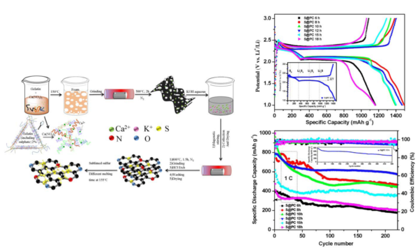 锂硫电池具有硫理论比容量高、能量密度高等优点,是继锂离子电池之后的极具潜力的能量存储与转换载体。该成果采用简单经济的方法,通过对商业明胶模板加载、热解刻蚀、熔融扩散等工艺过程成功地制备了三掺杂纳米尺度多孔碳硫宿主正极材料。所制备的三掺杂多孔碳具有高孔隙率、大表面积、高电导,成功地实现了对硫的物理化学双吸附,从而展现出了良好的电化学性能。研究结果在深入理解锂硫电池作用机理,为解决困扰锂硫电池实际应用中的低电导、硫的低利用率、容量衰减快、电化学反应动力学缓慢等诸多问题,提供了重要解决方案。