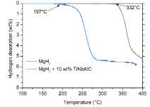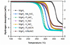 新能源团队研究发现许多MAX相材料对MgH2同样具有优异的改善效果(图1),尤以Ti3AlCN和TiNbAlC对MgH2的改善效果最为明显。微观催化机理研究表明,Ti3AlCN可以作为MgH2形核和长大活性位点,而TiNbAlC会在储氢材料吸放氢过程中转化为Ti的氢化物相,对MgH2的吸放氢过程起到“氢泵”的作用。