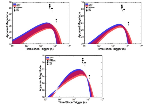 图5. 磁星驱动的千新星在i波段(红色)和r波段(蓝色)的光曲线。