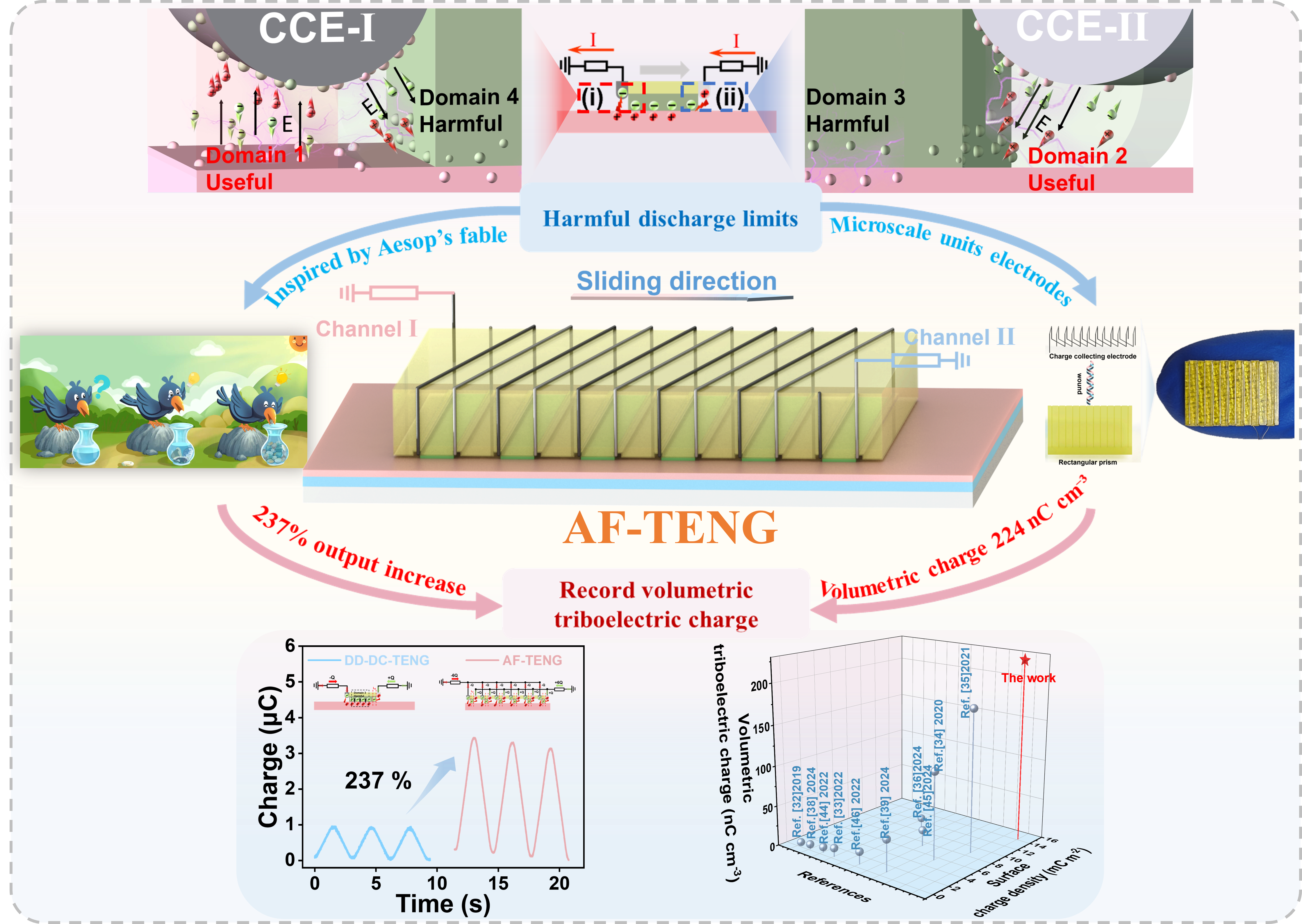 该成果以" Extreme Squeezing of Volumetric Triboelectric Charge to a New Record of 224 nC cm-3 Inspired by Aesop's Fables"为题,发表于国际知名期刊《Advanced Materials》(IF=26.8),MOTV